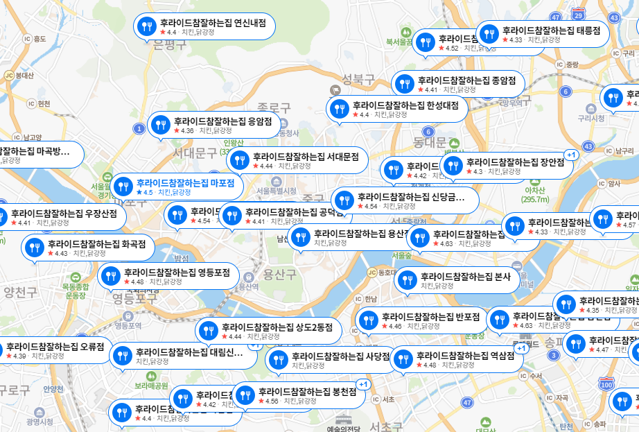 전국에 매장수가 너무 많아서 세다가 지쳤는데, 나무위키에 따르면 전국에 약 250여개의 가맹점이 있다.