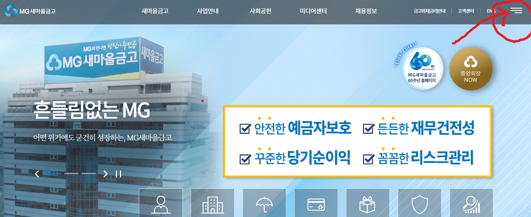 다음, 네이버등 포털 사이트에 새마을금고를 치면 홈페이지에 접속할 수 있다.