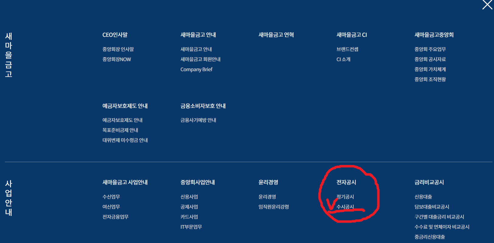 또한 정기공시에서도 각 새마을금고 지점의 자산건전성을 판단할 수 있다.