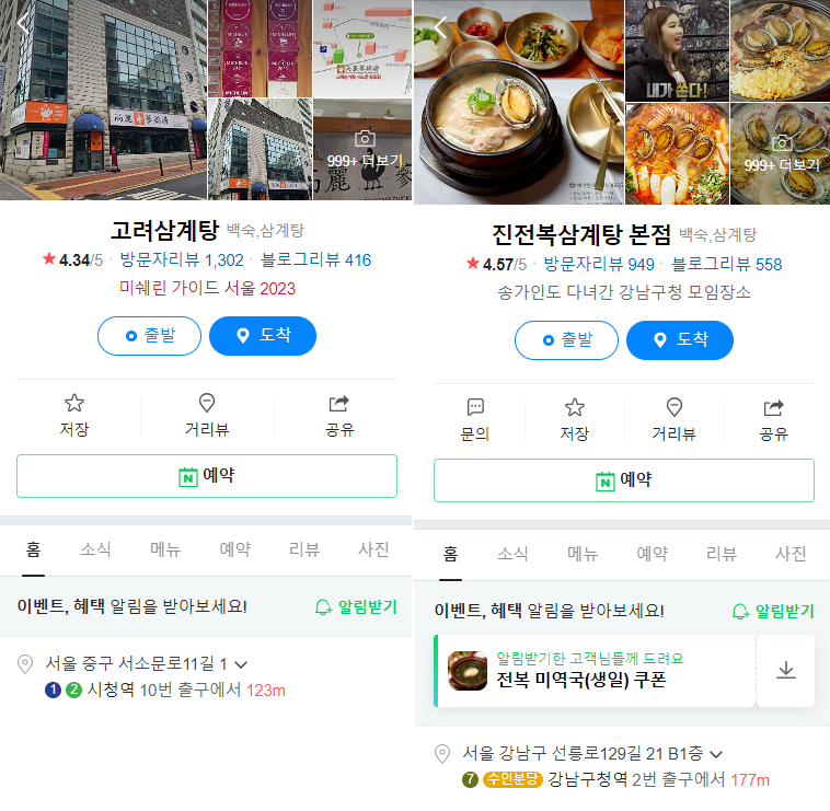 삼계탕은 서울 시청근처 고려삼계탕, 그리고 진삼계탕을 언급했는데, 어디라고 정확히 이야기 안했지만 정황상 강남구청의 진전복삼계탕 본점인 듯 합니다.
