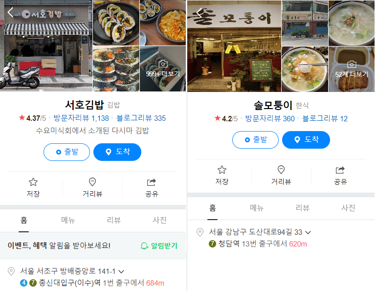 그는 장르별 맛집을 소개했는데, 리스트는 아래와 같습니다.