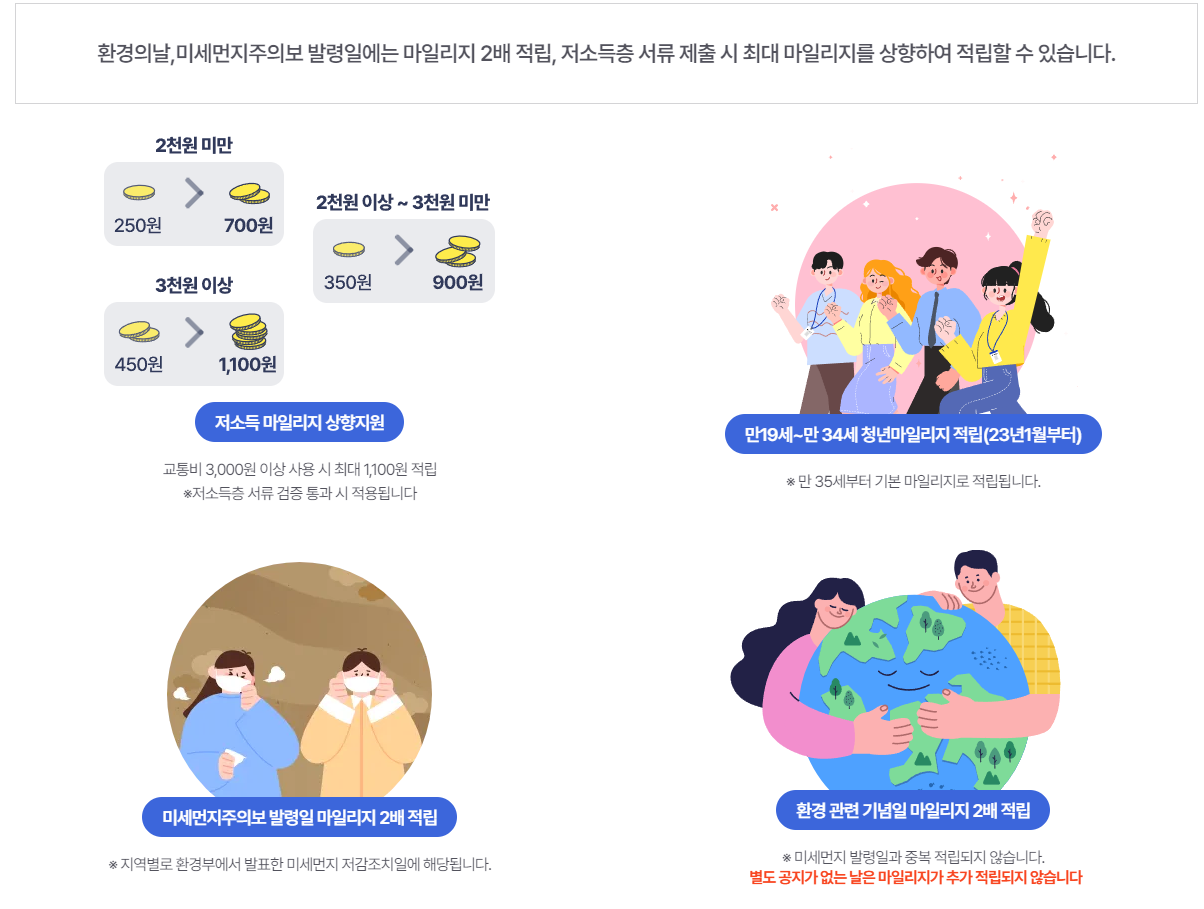 환경의 날이나 미세먼지주의보가 뜬 날에는 공지가 있으면 마일리지가 2배 적용된다고 하니 참고해주세요~