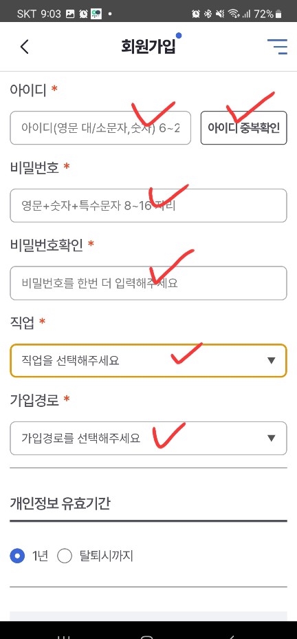 2. 그러면 아래와 같은 화면이 나오는데, 회원가입을 터치하세요.