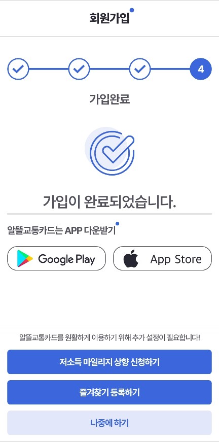 (아까 말씀드린대로, 기존에 알뜰교통카드-적용카드를 가지고 계시더라도, 아직 알뜰교통카드로 등록이 안된 경우에는 경고 메시지가 나옵니다. 당황하지 마시고 카드 어플이나 카드고객센터에 연락하셔서 지금 가지고 계신 카드에 알뜰교통카드 기능을 적용시키세요.)