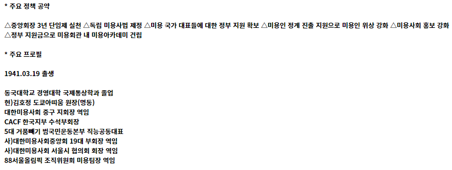 2011년 미용협회 회장 선거 관련 문서에서 기호 1번으로 나오신 김안자 후보의 프로필에서 김호정 도쿄아띠움헤어라는 상호를 찾을 수 있다.