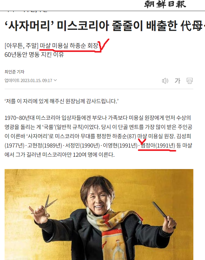 물론 염정아는 분명 자신의 은인을 김호정 원장님이라고 소개를 했고, 다른 경쟁 미용실 이름으로 마샬과 세리가 있다고 분명히 말했기 때문에, 마샬 하종순 회장의 인터뷰의 내용이 사실인지 여부는 나도 잘 모르겠다.