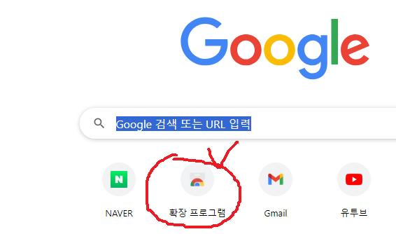 2. 구글 검색창 아래 보시면 대부분 "확장프로그램" 이라고 어플이 있습니다. 클릭하세요