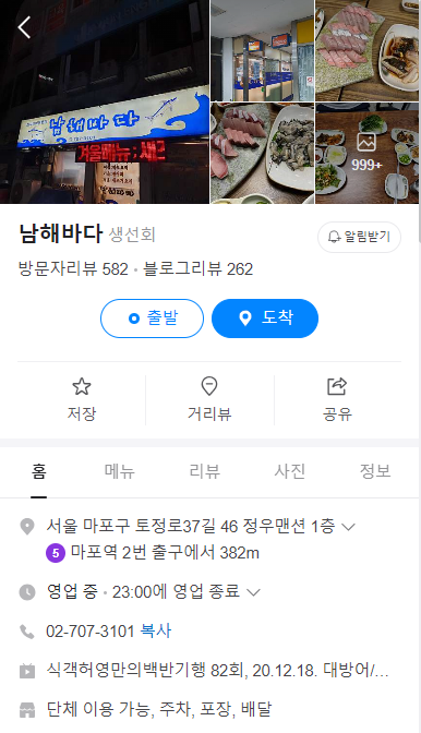 그런데 남해바다는 숙성회이기 때문에 특유의 감칠맛이 살아나는 것 같습니다.