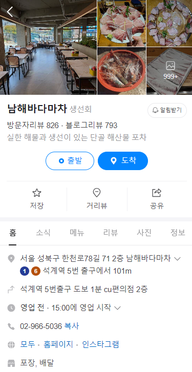 석계역 바로 옆에 위치한 남해바다마차도 맛집입니다.