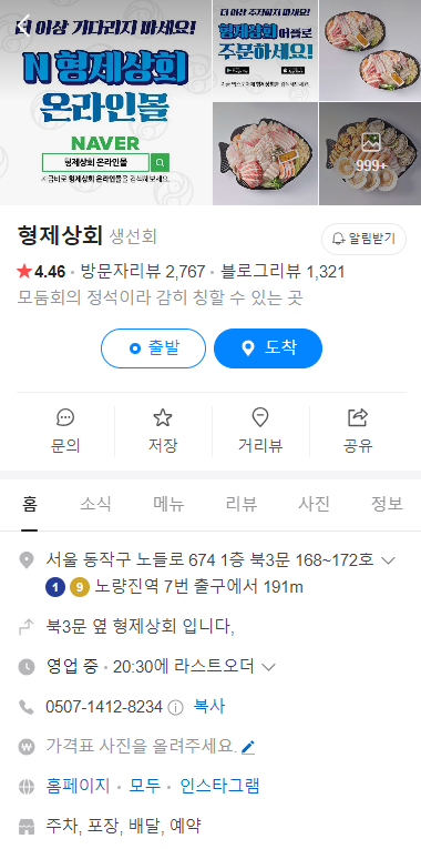 노량진 수산시장안에 있는 형제상회도 유명합니다.