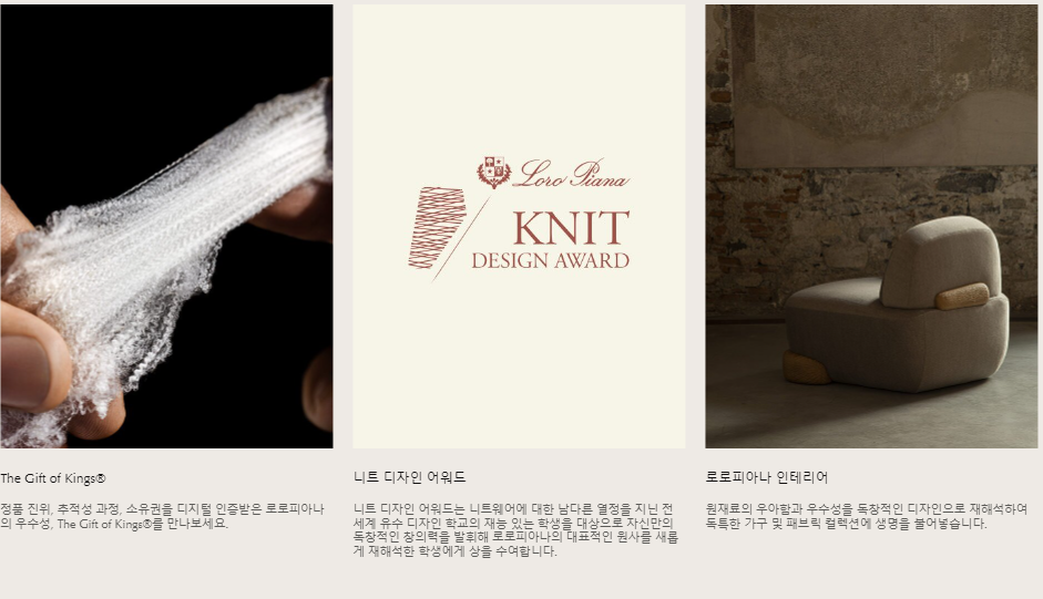 성공한 사람과 같이, 매력을 갖춘 브랜드가 성공한다. Loro Piana처럼 독창적인 제품으로 브랜드 매력을 높여서 오래도록 사랑받는 브랜드를 만들기 위해서, 우리는 Loro Piana로부터 배울 점이 많다."