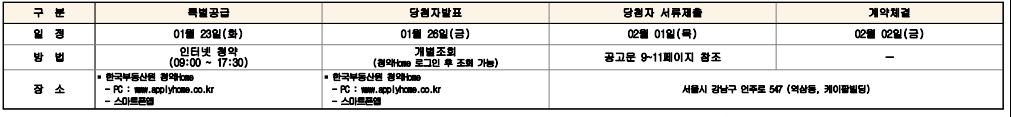 일정은 아래와 같습니다. 1월 23일 접수 -> 26일 발표 -> 2월 1일 서류제출 -> 2월 2일 계약 체결