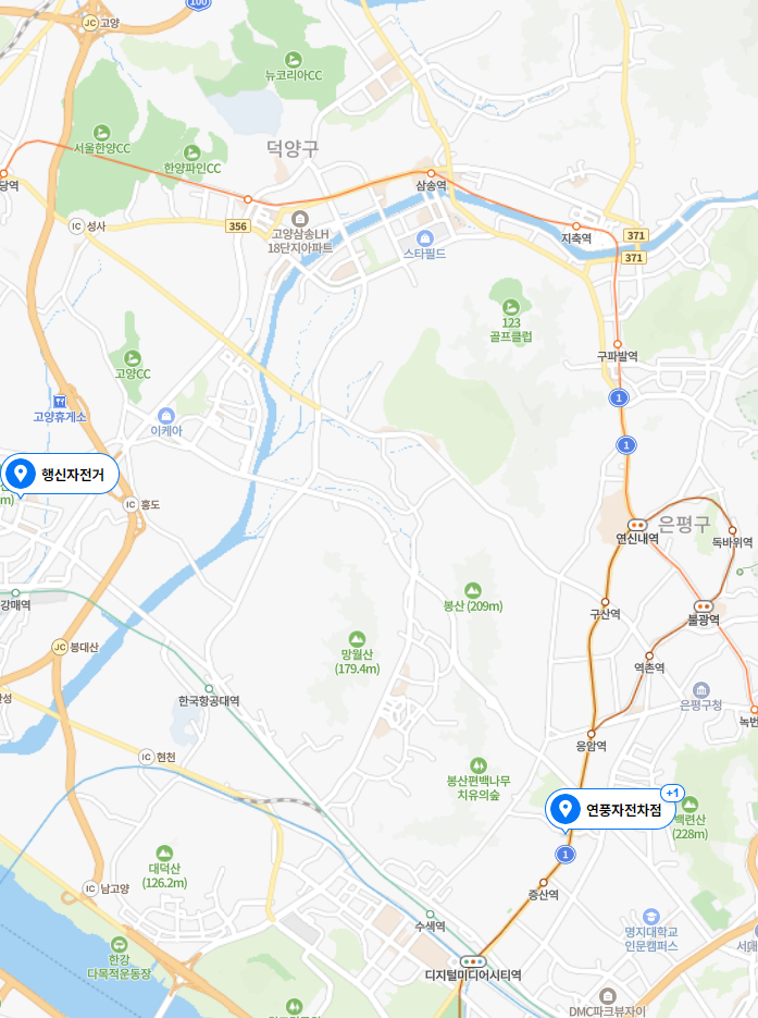 고양시 중 일산, 행신, 등지에는 자전거 수리 업체가 있는데, 위에 말씀드린 지역에는 업체가 없는것이 사실입니다.