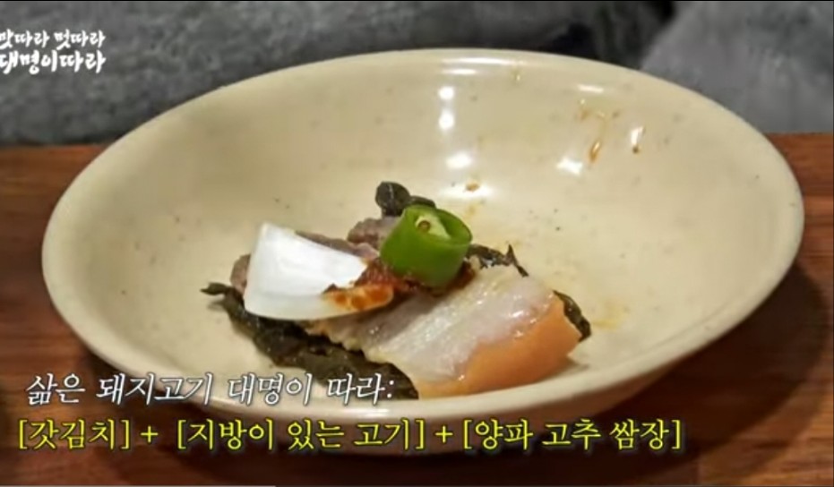 김대명이 추천하는 삶은돼지고기 먹는 법입니다.