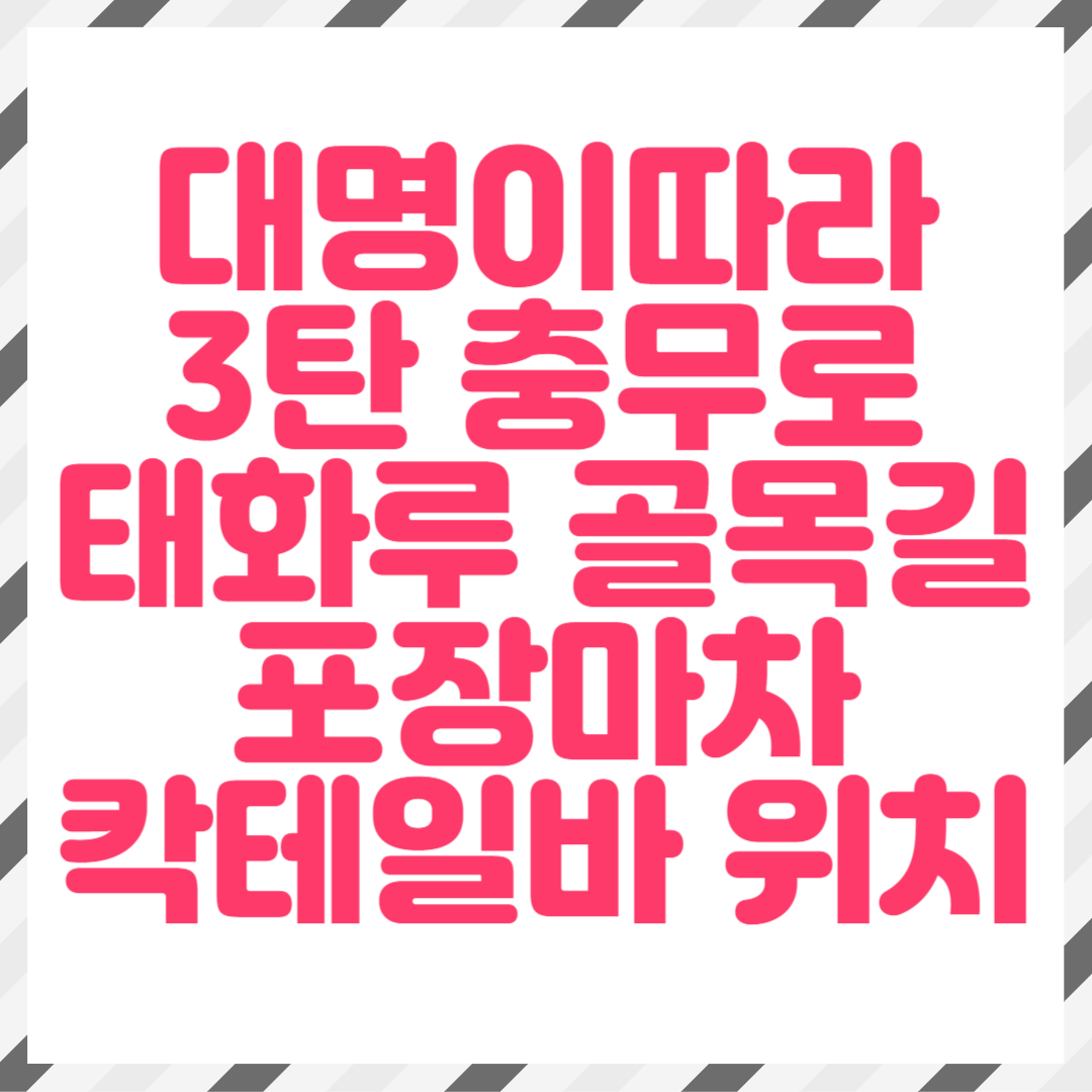 | 대명이따라 2탄 서촌편 녹사평 김치찌개 치킨집 이름, 골목집, 먹태, 칵테일바 위치 장소 십오야 경복궁역 김대명 맛집 (2) | 2024.03.07 |