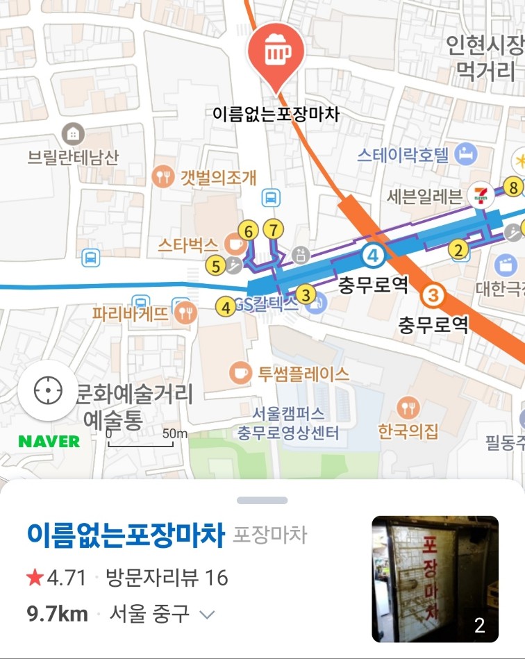 2차로 간 곳은 충무로역 근처에 있는 포장마차입니다.