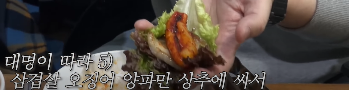 이제 다섯번째 레시피로 삼겹살 오징어 양파만 상추에 싸서 드셔보시랍니다. ㅋㅋㅋㅋ