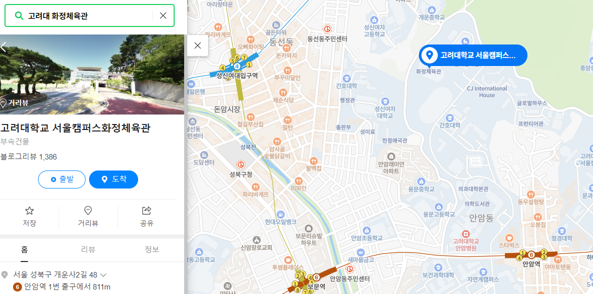 화정체육관은 성북구 개운사2길 48에 위치해 있는데요. 안암역 1번출구에서 내려서 걸어서 올라가야 합니다. 한 800미터 정도 됩니다.