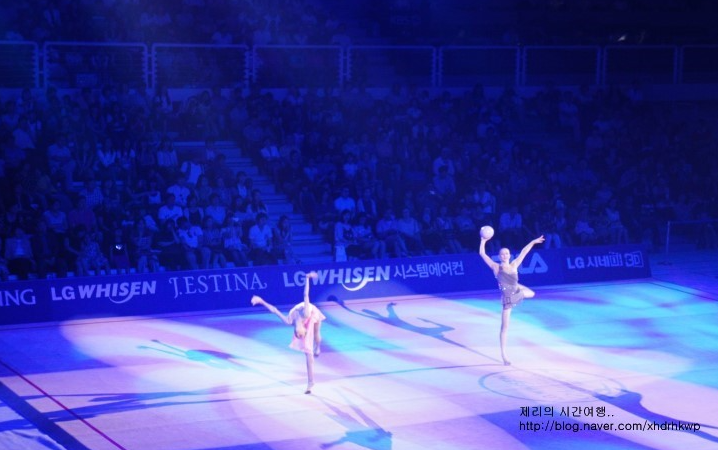 리듬체조 경기가 있었을때 이런 모습이었다고 하는데, 배치를 저렇게 하면 더 아래까지 좌석이 내려오는가 보네요.