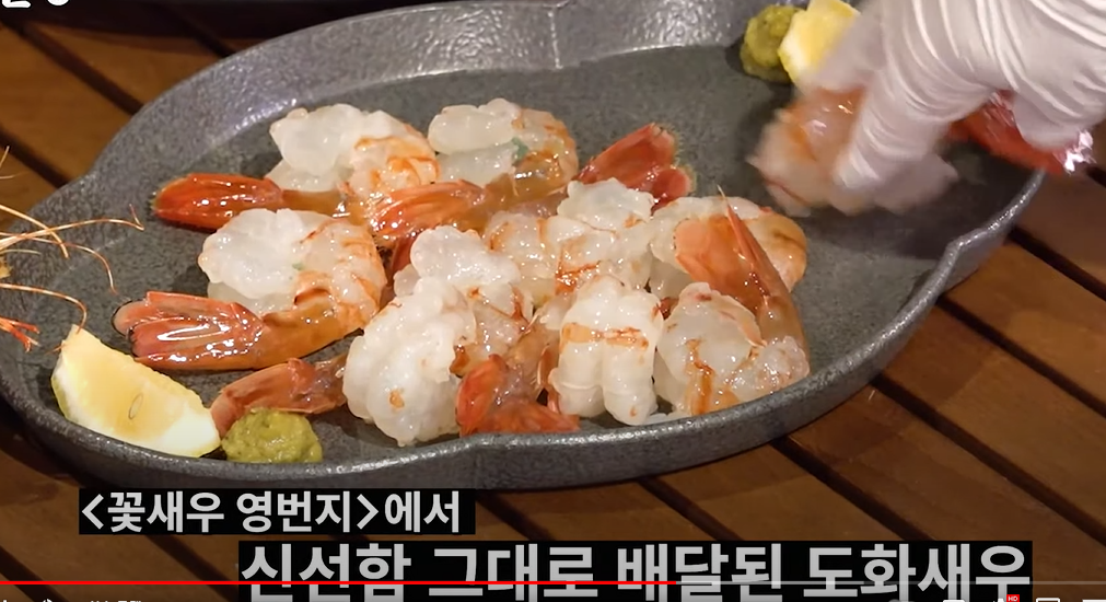 보기만 해도 너무 먹음직 스러운 새우 회가 소개되었습니다. 요새 강남에서 너무나 핫한 영번지라고 합니다.