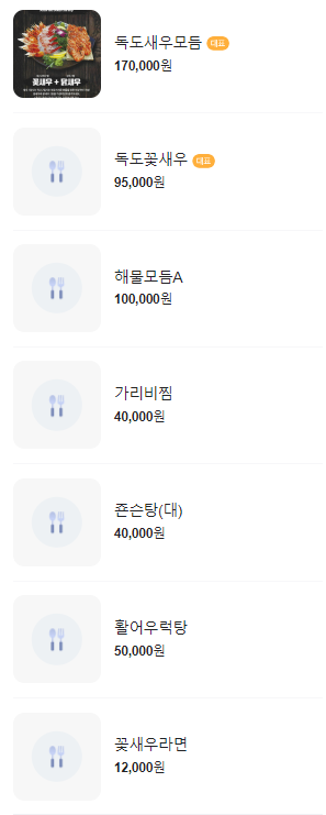 매뉴는 단촐하네요. 영상에서 보셨던 독도새우모듬이 17만원입니다.