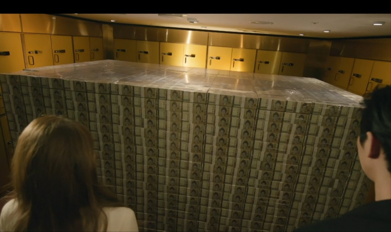 앞에서부터 수평방향 16 x 높이 20 x 5만원 100장다발 100묶음= 16*20*500,000,000원