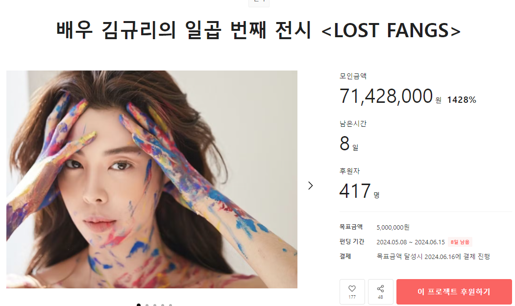 현재가지 417명이 후원을 해주셨는데요. 목표금액이 500만원이니까.. 벌써 목표금액을 넘어섰을것 같은데요.