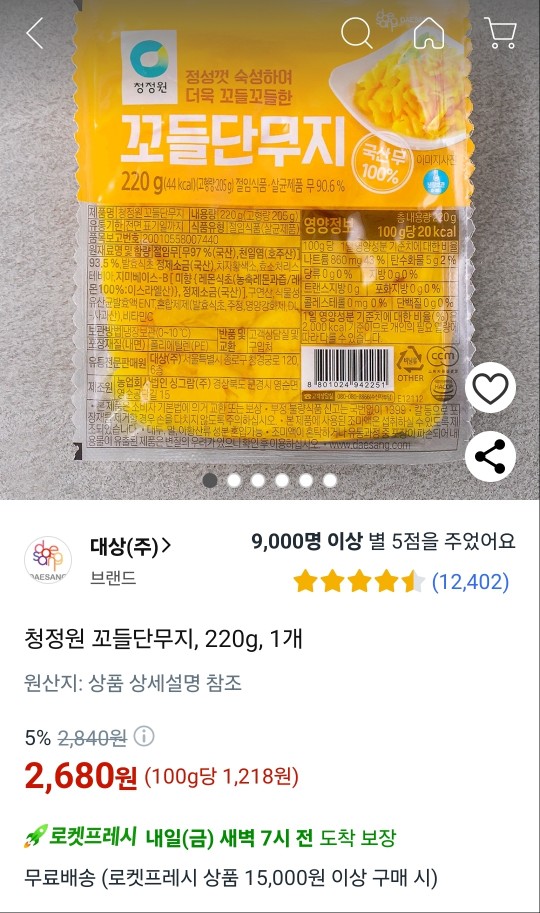 꼬들단무지는 판매처 링크 걸어드릴게요
