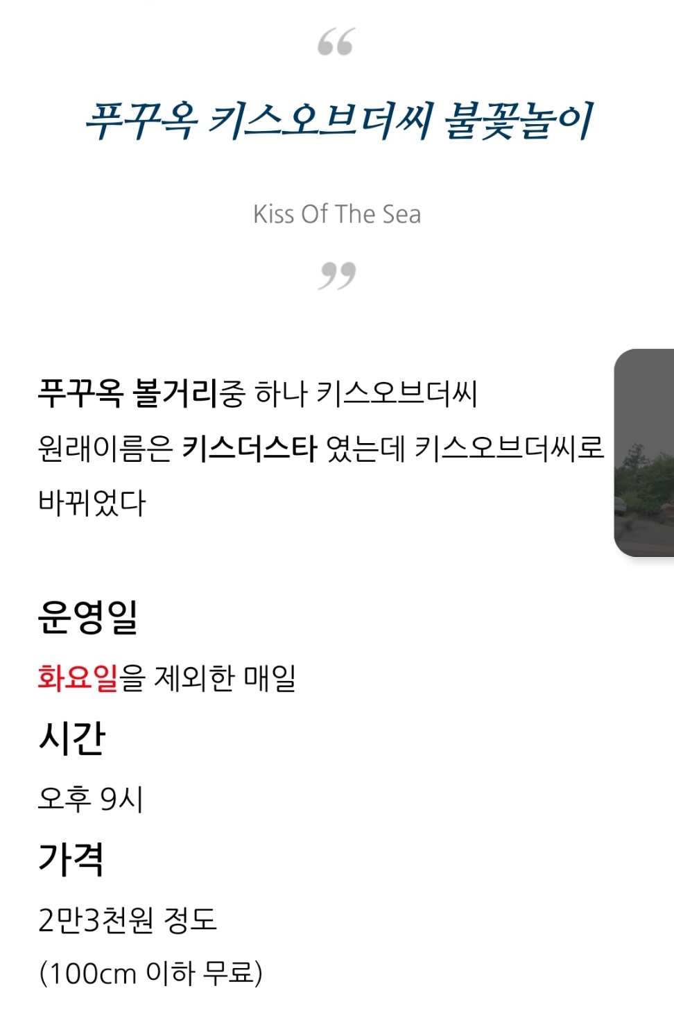 숙소의 공연장에 가서 불꽃놀이을 구경하는 모습이 그려져요. 정말 가보고 싶죠?