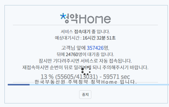 현재 청약홈은 어마어마한 접속 대기가 이어지고 있습니다.