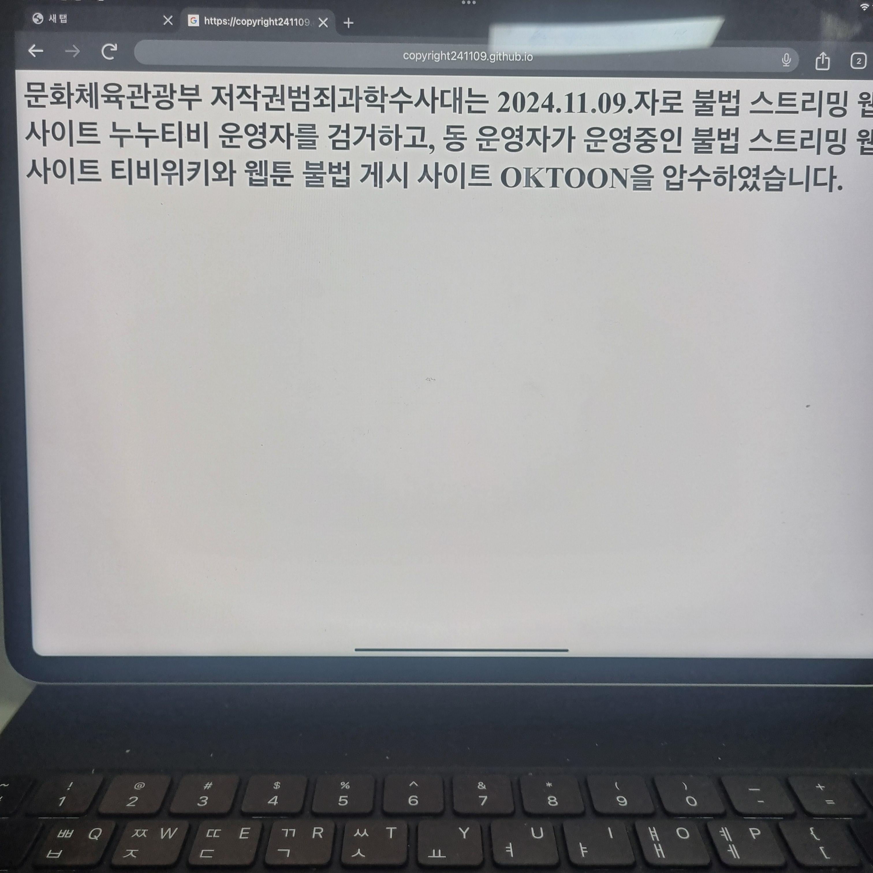 오늘 2024년 11월 09일 문화체육관광부 저작권범죄과학수사대가 TV 위키의 운영자를 검거하고 티비위키와 OK툰을 압수하였습니다.