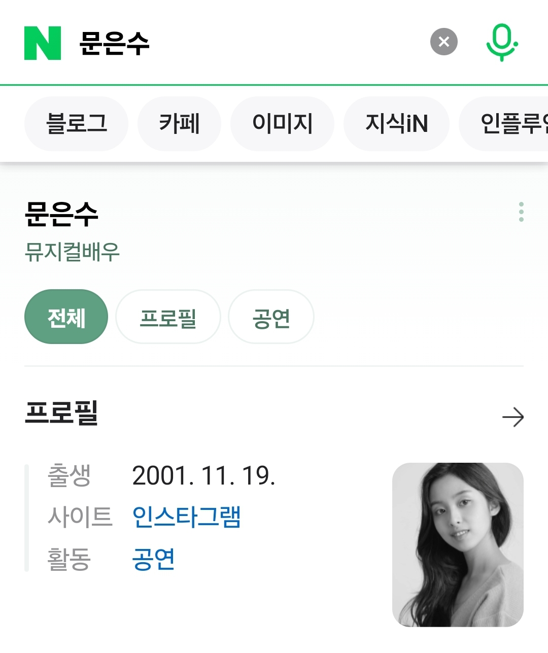 이분은 2001년생의 문은수라는 배우님이신데요.