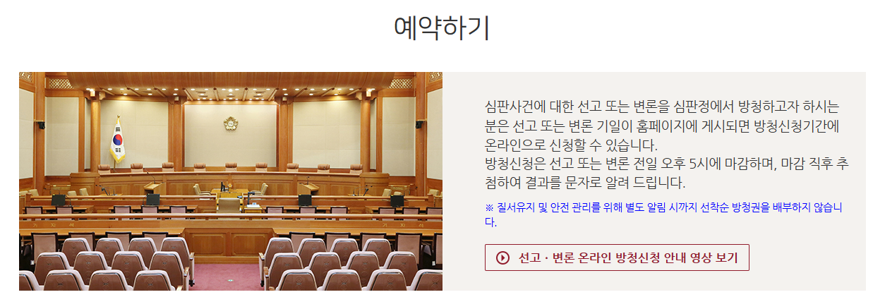 방청을 예약하는 방법은 아래로 가보시기 바랍니다.