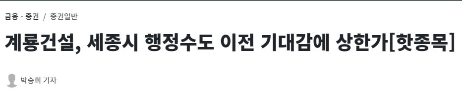 계룡건설이 직접적인 수혜를 받을 수 있다는 기대감이 주가에 반영된 것이죠.