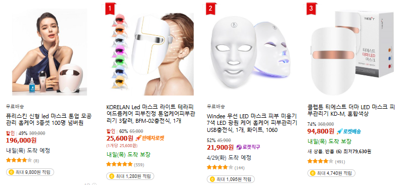 • 🌟 LED 뷰티 마스크: 피부 탄력과 광채 케어 필수템! 40~50대 여성에게 꾸준히 인기인 뷰티 디바이스예요.