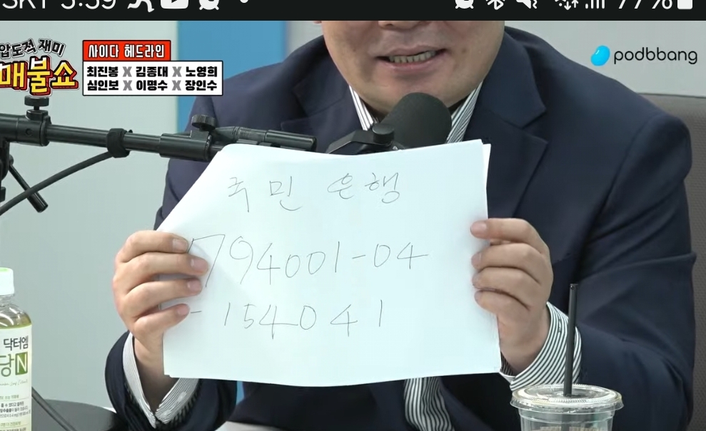 그러면서 말미에 청취버스 운영비를 요청하는 번호를 띄웠고 전화연결이 안되자 후원계좌도 소개했는데요.