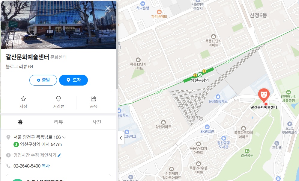 장소: 갈산문화예술센터 - 양천구청역(2호선) 근처