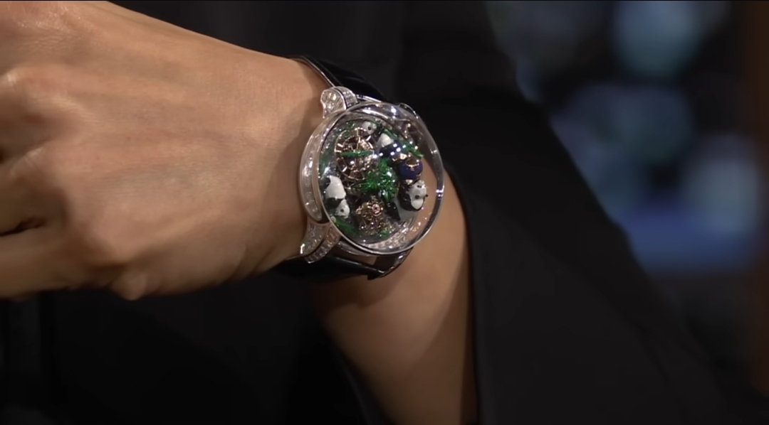 이병헌의 '판다시계'는 Jacob & Co의 초고가 한정판 'Astronomia Tourbillon Static “Metiers d'Art” Pandas'로, 약 13억 원에 달하는 예술적 가치와 희소성을 지닌 명품 시계입니다.