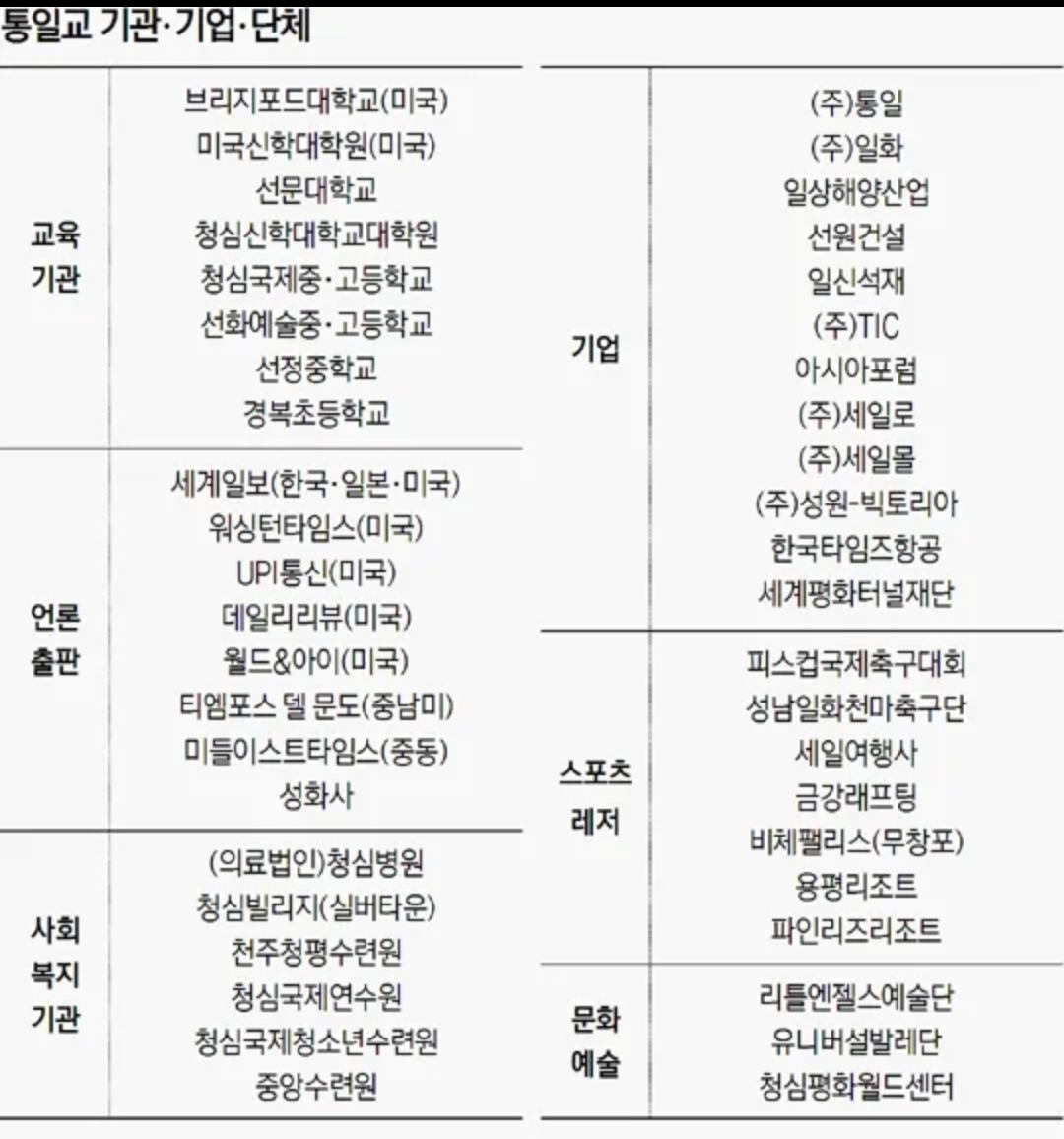 통일교(세계평화통일가정연합)는 **“통일그룹”**이라는 이름 아래 다양한 계열사와 기관을 운영합니다.