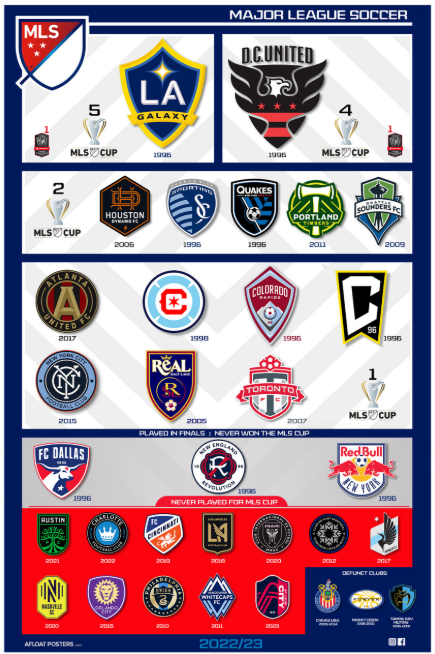 - 순위 및 우승 방식: 정규 시즌 기록이 가장 좋은 팀에 '서포터스 쉴드(Supporters’ Shield)'가 주어집니다. 이후 각 컨퍼런스 상위 9개 팀은 플레이오프(MLS Cup Playoffs)에 진출, 5단계 토너먼트 끝에 최종 우승팀(MLS Cup Champion)을 결정합니다.