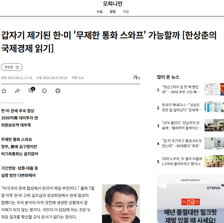 2025년 기준, 미국과 무제한·무기한 통화스와프를 맺고 있는 국가는 유럽(EU), 일본, 영국, 스위스, 캐나다의 5곳이 유일합니다.