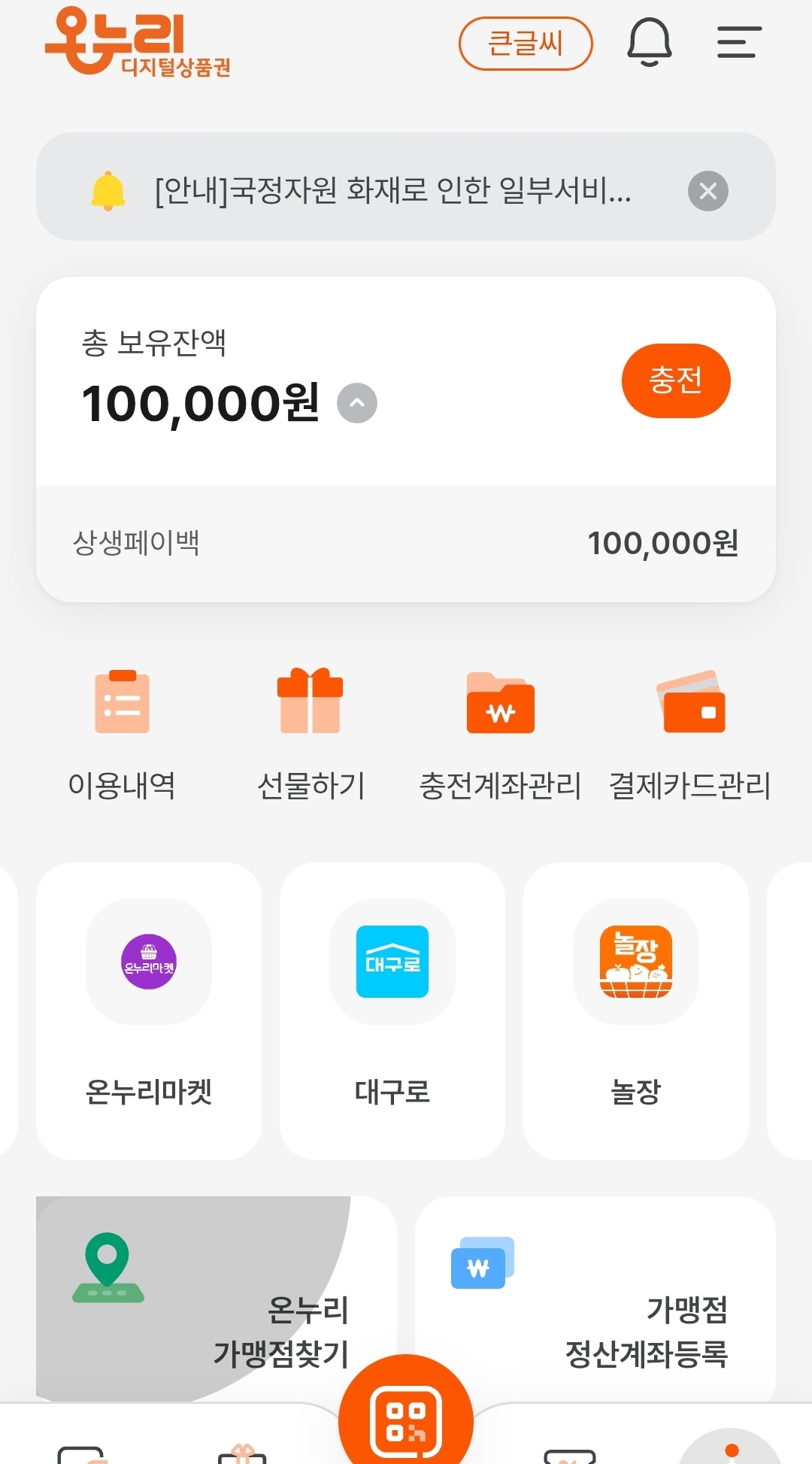 근데 이게 실제 온누리 상품권이 어떻게 지급되나 봤더니, 그냥 어플로 온누리상품권 어플을 다운받으시면 자동으로 들어오네요!