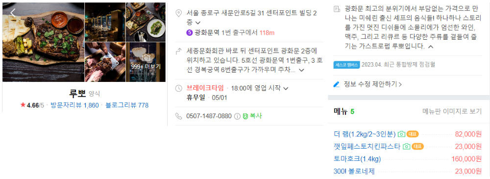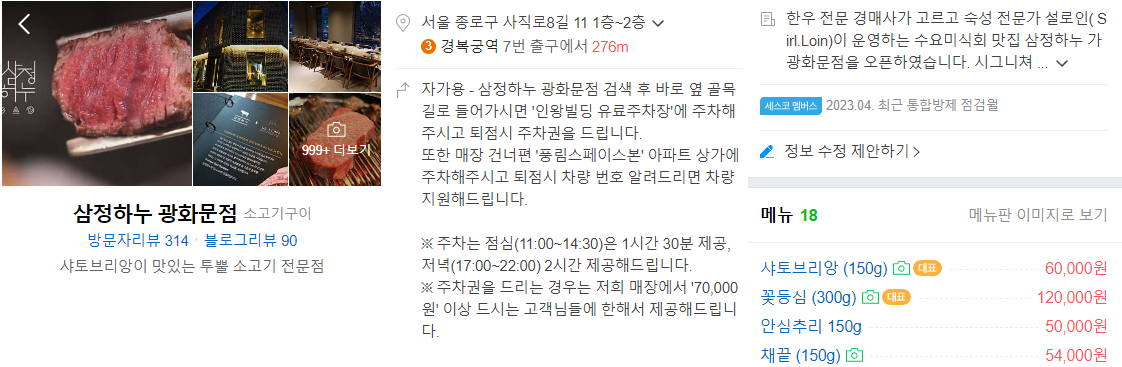 | 광화문 맛집 종로구청 쪽 거래처 외국인 손님 모시고 갈만한 고급 캐주얼 식당 BEST 20 (0) | 2023.05.03 |