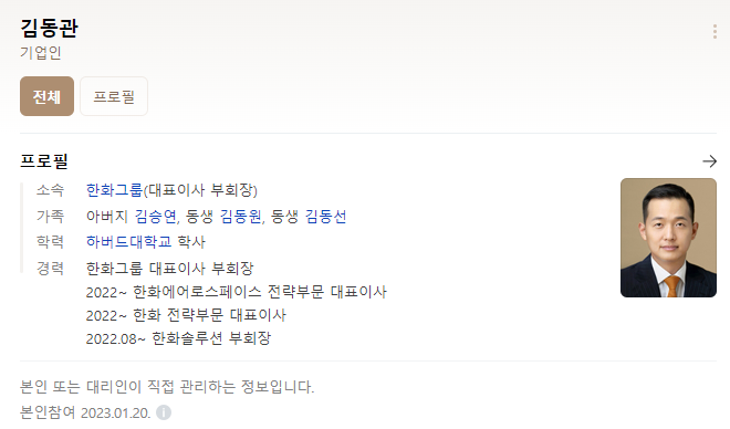 바로 한화그룹의 3세이자 부회장인 김동관 부회장이라는 추측이 있다.